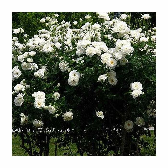The ‘Iceberg’ is a popular, bushy, upright, floribunda variety of rose. Free flowering, it blooms between June and September producing clusters of slightly fragrant, pale cream, double flowers with dark glossy foliage.