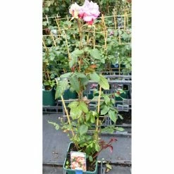 ‘Love Knot’ is compact patio climbing rose. Gorgeous, medium-sized, deep red, double flowers are produced repeatedly from June all the way through to September contrasting nicely against the glossy, medium-green foliage. With its delicate fragrance it makes an excellent cut flower. Hardy, easy to grow and disease resistant this rose with its compact size and upright habit is ideal for growing in a large pot trained up a trellis in a sunny location. ‘Love Knot’ has been awarded the Award of Garden Merit by the Royal Horticultural Society (RHS) which helps gardeners make informed choices about plants.